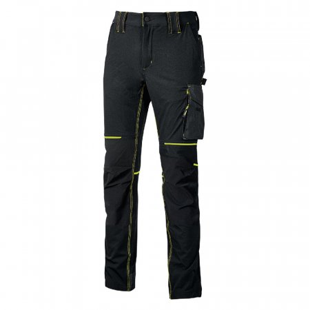Utilizzo estivo. In nylon 86%, spandex 14%. Tessuto idrorepellente, massima traspirabilità. Con due tasche anteriori, elastico in vita con un sistema di regolazione a scomparsa. Carrè posteriore accentuato per protezione lombare, profili in reflex anteriori e posteriori e nastro rosso/reflex su passante tubolare posteriore. Tasca laterale porta utensili, multifunzionale con porta badge a scomparsa, due tasche posteriori di cui una con pattina e una con chiusura di sicurezza a velcro. Due tasche con zip in corrispondenza del tascone laterale e della tasca frontale destra. 140 gr/mq.