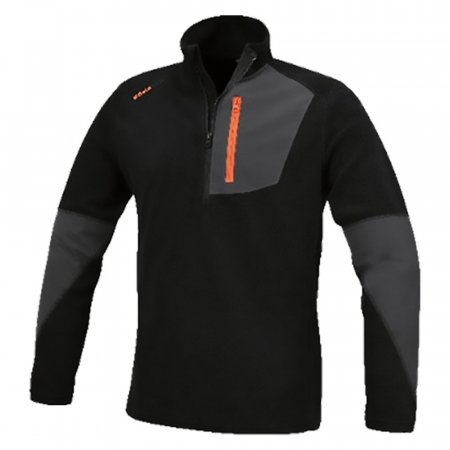 In 95% poliestere, 5% spandex, 180 gr. Polsini elasticizzati, tasca al petto con chiusura zip verticale, inserti in poliestere su tasca petto e maniche. Colore nero.