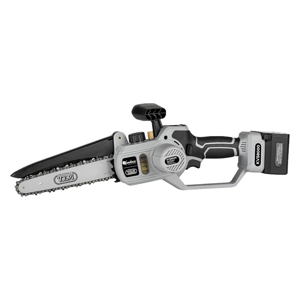 Per l'uso con una sola mano. Impugnatura ergonomica soft grip con protezione, doppio interruttore di sicurezza. Serbatoio olio integrato esterno, lubrificazione automatica catena, regolazione tensione catena manuale, lubrificazione ingranaggi manuale. Motore brushless, display carica residua, ore parziali/totali lavoro, temperatura scheda elettronica, impostazioni lubrificazione. Batteria litio 21,6V - 4 Ah ricaricabile, innesto rapido. Catena 1/4' sp.1,1mm, 48 maglie. Con 2 batterie, caricabatteria, kit manutenzione, copri barra, valigetta. Peso macchina 1,6 kg.