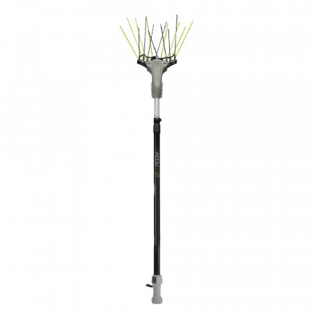 A 4+4 astine fessibili in fibra di carbonio con movimento oscillatorio brevettato ad alta resa. Equipaggiato con asta telescopica, motore elettrico brushless alimentato direttamente dalla batteria e provvisto di scheda elettronica all'interno dell'impugnatura. Cavo di alimentazione da 15 mt con connettore e pinze. Funzionamento a batteria min. 70-80 Ah, protezione motore elettronica, Produttivita' 90/130 kg/ora. Peso 2,4 kg circa (senza prolunga). Made in Italy.