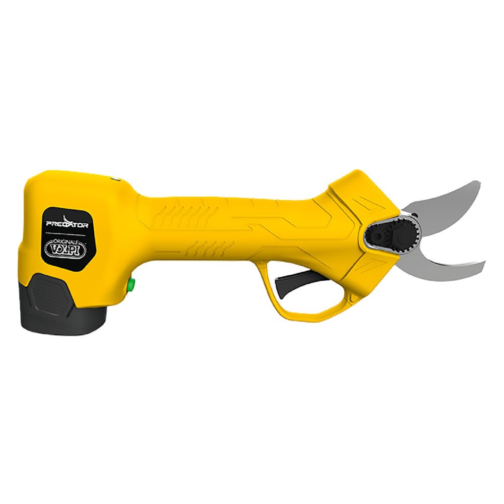 Per lavori di potatura su viti, arbusti, olivi. Con batteria litio ricaricabile, lame di taglio in acciaio e lama mobile intercambiabile. Motore brushless e sistema di movimento a ingranaggi. Funzione di spegnimento rapido stand-by. Dotazione: valigetta in cartone, 2 batterie, carica batteria, chiave manutenzione. Potenza nominale 150 W, Ø massimo di taglio 20-22 mm. Autonomia 2-3 ore (in funzione del tipo di utilizzo). Peso 0,680 kg.