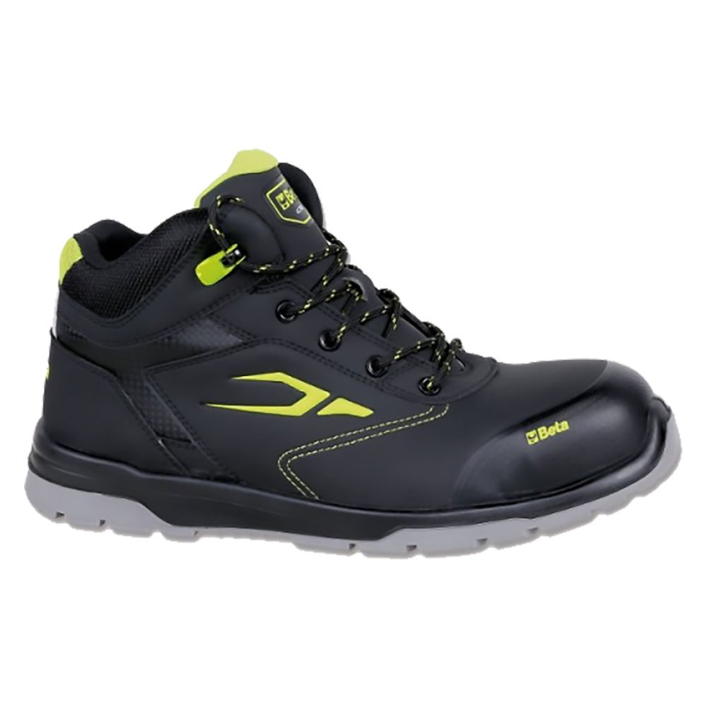 Tomaia in nabuk idrorepellente con rinforzo antiabrasione zona puntale e supporto stabilità tallone. Sfilamento rapido. Suola in poliuretano bidensità, puntale in materiale polimerico, resistenza '200 Joule'. Antiperforazione in fibra composita con trattamenti ceramici. Sottopiede anatomico con rialzo ammortizzante in zona tallone. Prodotto completamente metal free. Certificazione EN ISO 20345:2011. Grado di protezione 'S3'.