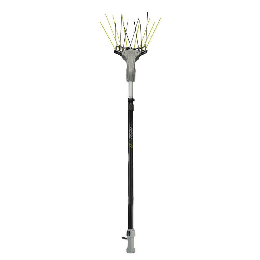 A 4+4 astine fessibili in fibra di carbonio con movimento oscillatorio brevettato ad alta resa. Equipaggiato con asta telescopica, motore elettrico brushless alimentato direttamente dalla batteria e provvisto di scheda elettronica all'interno dell'impugnatura. Cavo di alimentazione da 15 mt con connettore e pinze. Funzionamento a batteria min. 70-80 Ah, protezione motore elettronica, Produttivita' 90/130 kg/ora. Peso 2,4 kg circa (senza prolunga). Made in Italy.