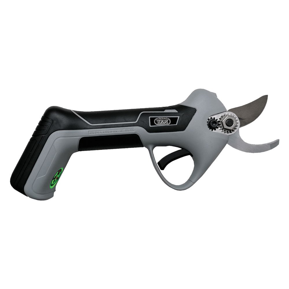 Per lavori di potatura su viti, arbusti, olivi. Con batteria integrata a litio ricaricabile, lame di taglio in acciaio e lama mobile intercambiabile. Motore brushless e sistema di movimento a ingranaggi. Funzione di spegnimento rapido stand-by. Display con indicatore di livello carica, luce led per illuminare la zona di lavoro. Due posizioni di apertura lame memorizzabili. Dotazione: fodero, cavo USB per ricarica, batteria, kit chiavi per manutenzione. Potenza nominale 180 W, Ø massimo di taglio 22 mm. Autonomia 3-4 ore (in funzione del tipo di utilizzo). Peso 0,750 kg.